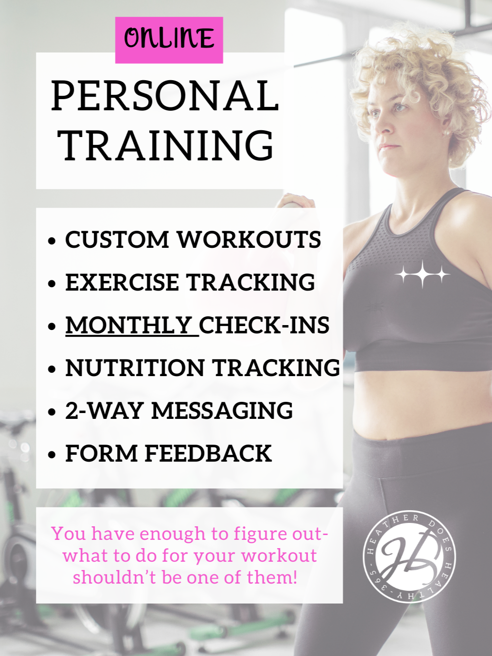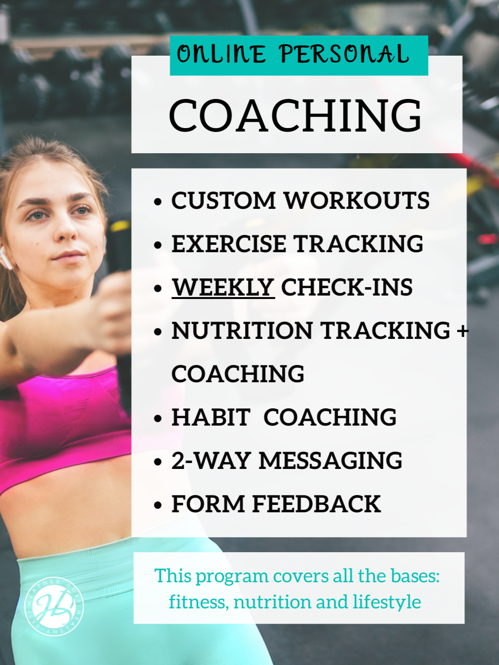 Heather Does Healthy, offers a variety of training options to give you the help you need to reach your goals. From quick start guides to detailed coaching, you have access to the best!