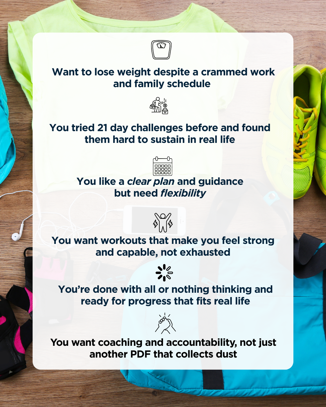 That’s built into the program. You’ll learn how to adjust your week and keep moving forward—no guilt, no “starting over.”